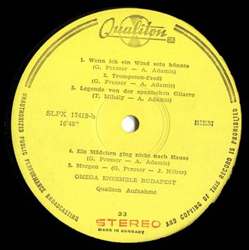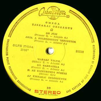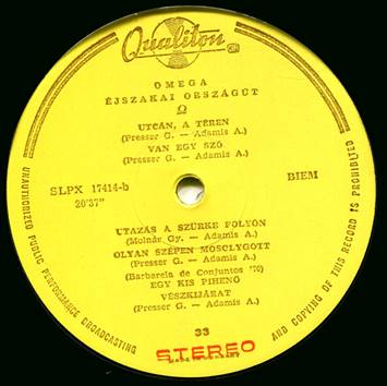 The band’s name was typed incorrectly on the label as JANOS KOBER And The Half Omega Band due to the circumstance that not all band members travelled to Japan. |